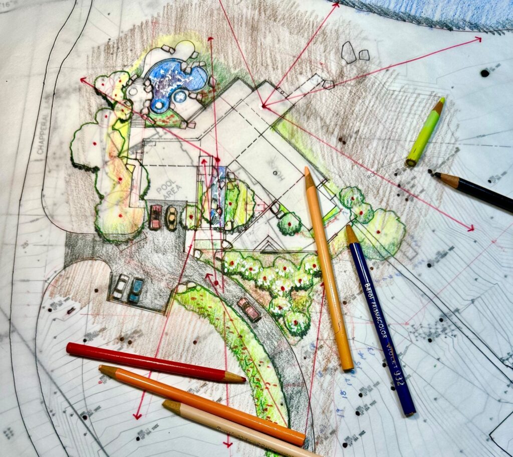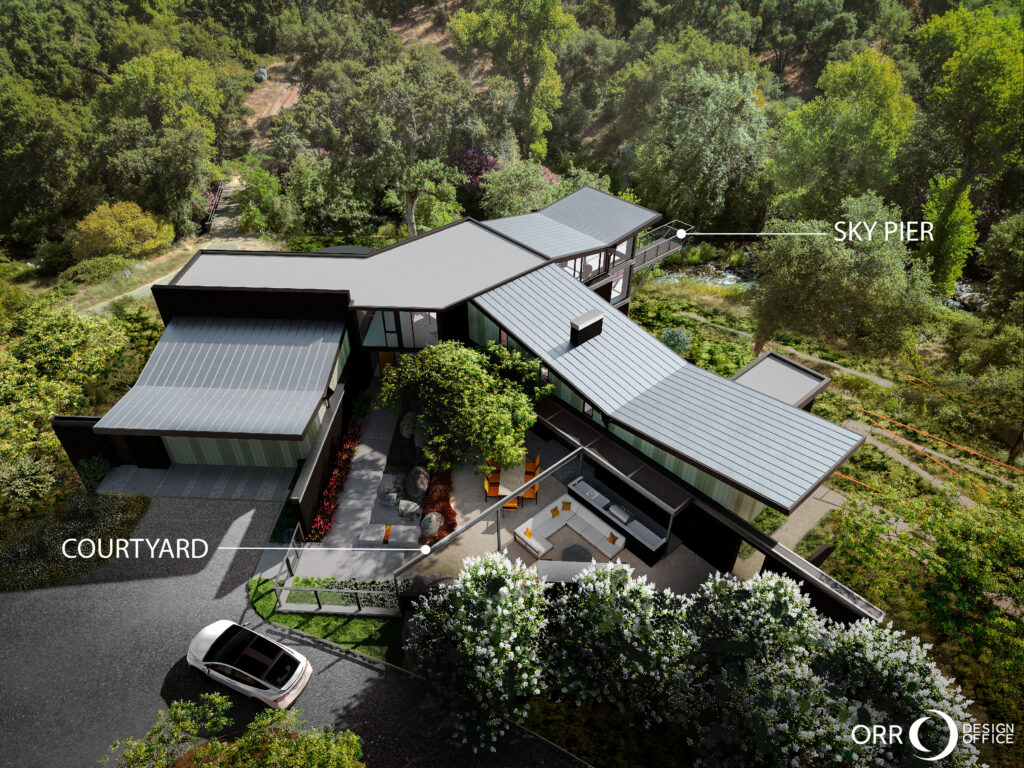 We ALWAYS visualize and design the journey! For a new modern home, we designed on a rural 5-acre site in the Sierra foothills, the journey TO THE HOME influenced the DESIGN OF THE HOME. Our design begins way before the front door.